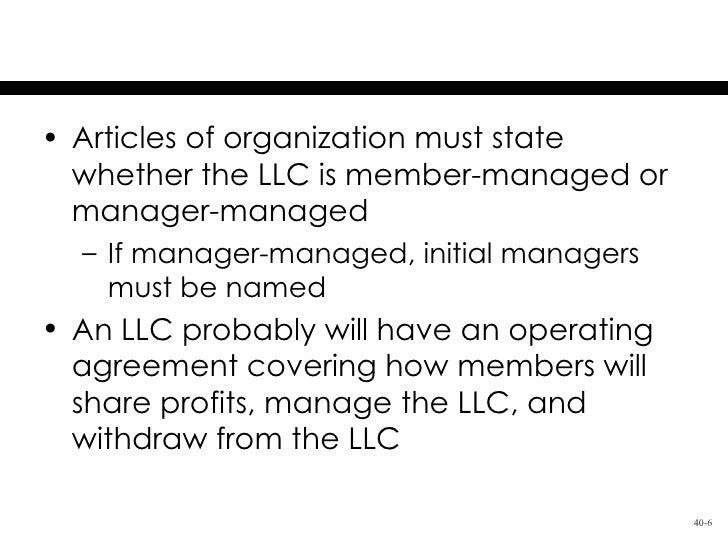 O Changed “limited liability company agreement” to “operating agreement” LLC must check to specify whether the LLC is member-managed or manager-managed. operating agreement may eliminate, expand or restrict these rights and may vary, ... Access Doc
